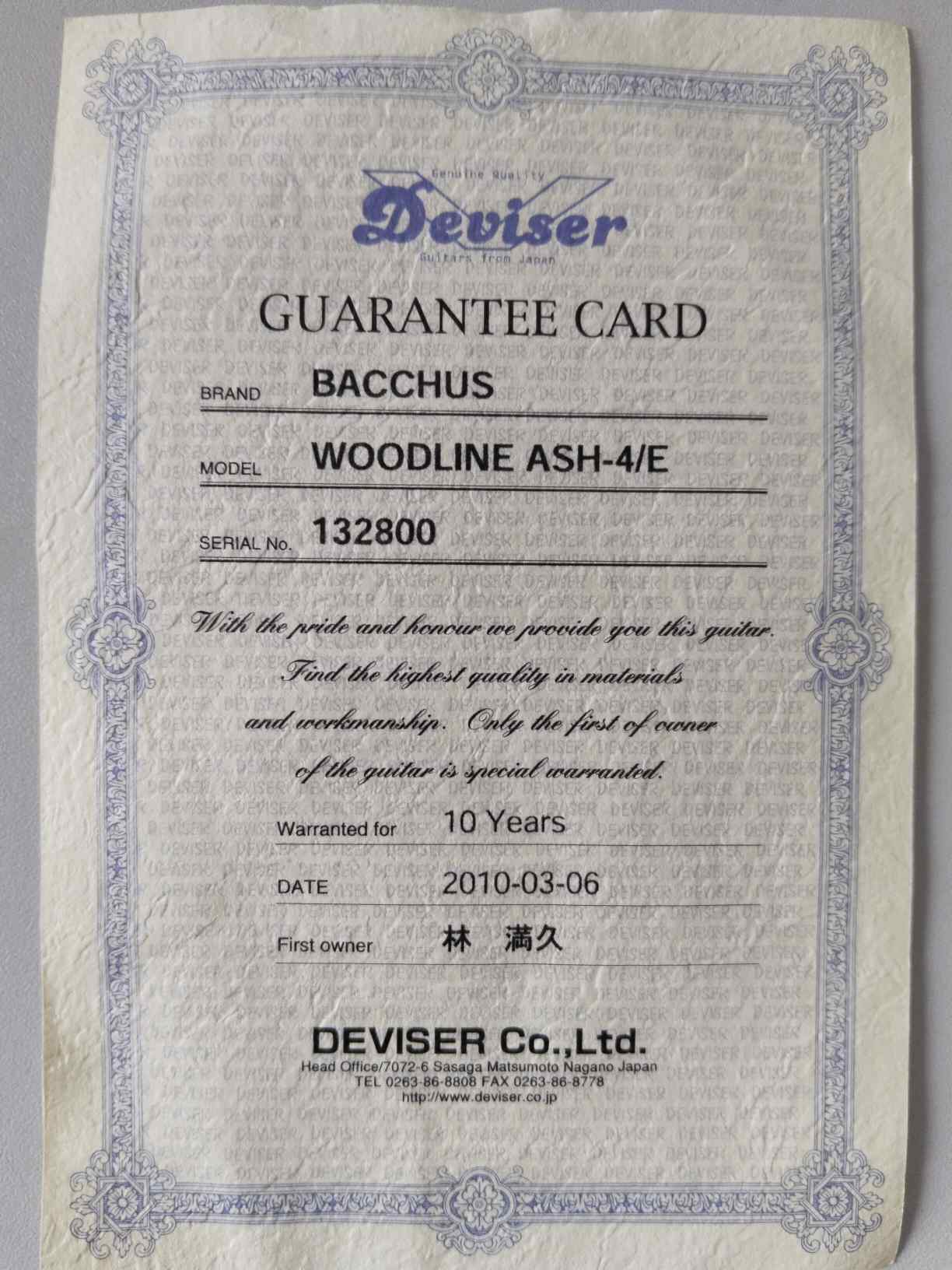 1) Bacchus hand made Ash-4. Ясень, клён, эбена, перламутр. Воск, пассив, колки Gotoh GB-11W, двойной бридж, не очень свежие данлопы 45-105. март 2010г