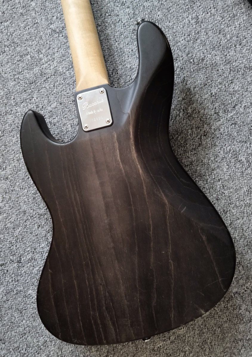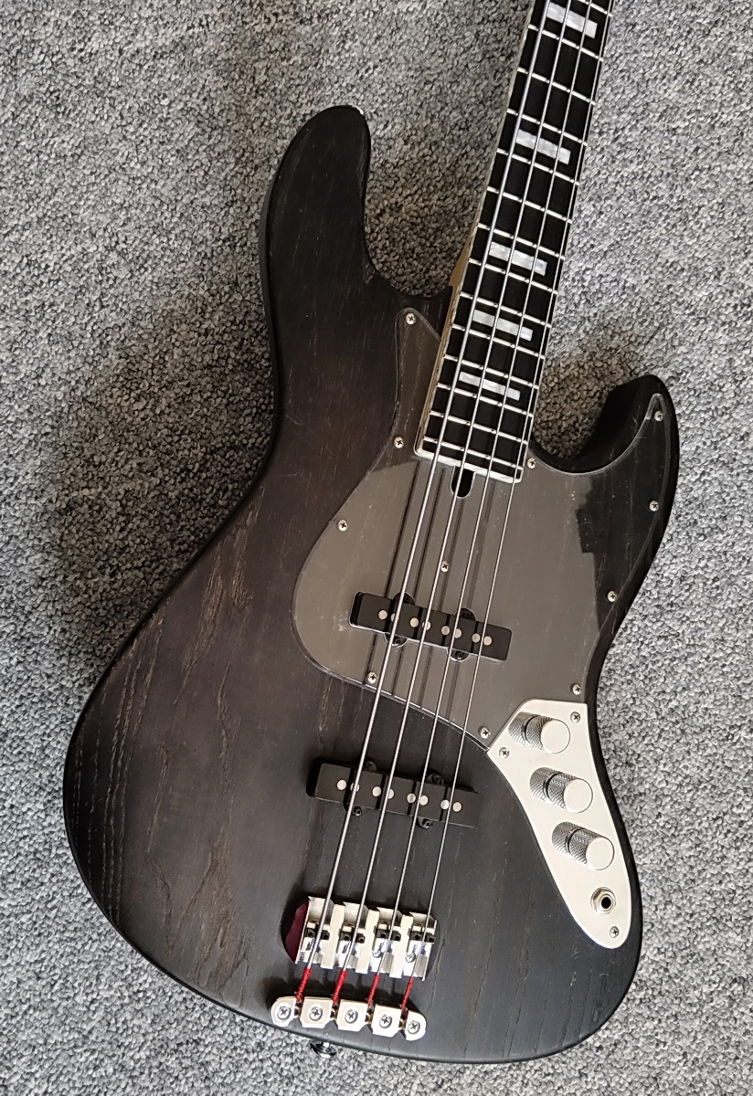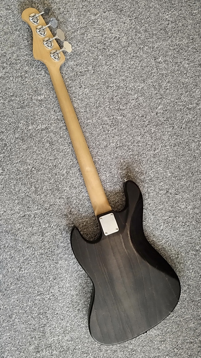 Внешка как у fender aerodyne, только вместо липы болотный ясень и версия без канта по корпусу. Воск, почти черная. Как смог - на фото передал, но гораздо темнее.